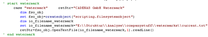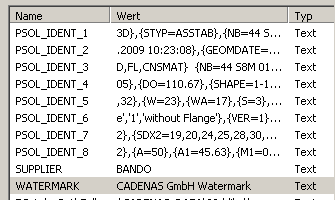 After restarting the module in CAD and PARTdataManager, the modified VB file is now loaded and is ready for use and functional. The part properties in CAD show the successful export. The WATERMARK entry has the value from the specified text file: