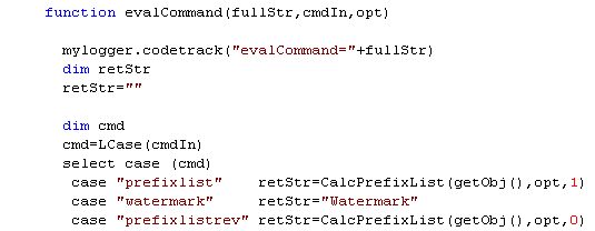 A bit earlier, we see the check whether a dynamic value has been passed. All parameters and functions in the select case construction are listed there: