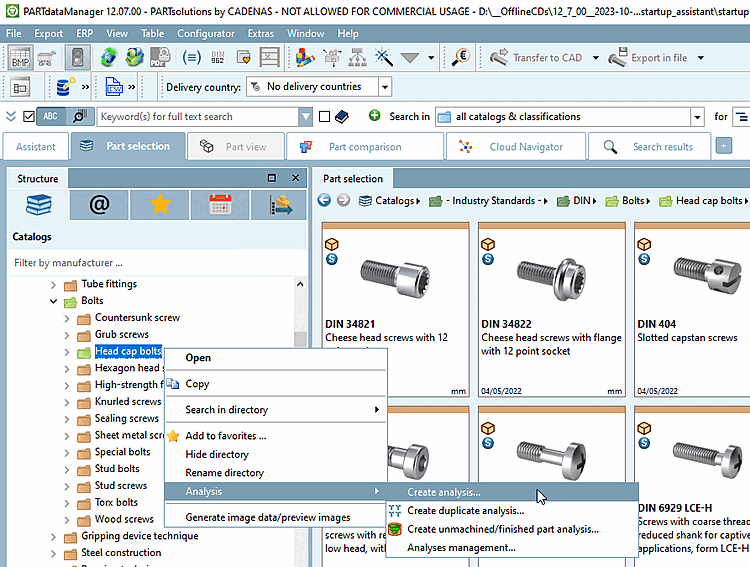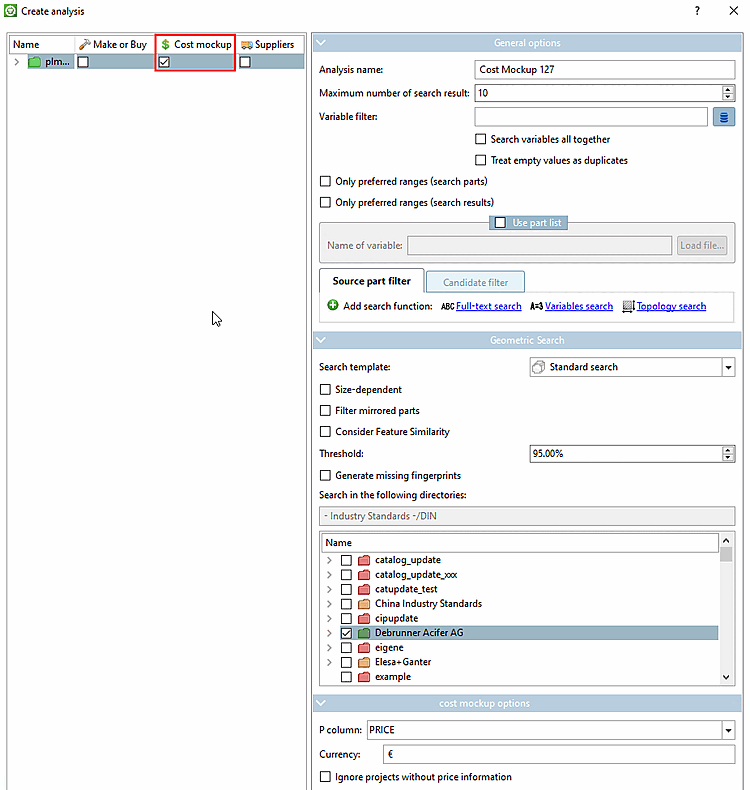 If you want to compare the prices of similar (interchangeable) parts in different manufacturer catalogs, select the cost mockup analysis.