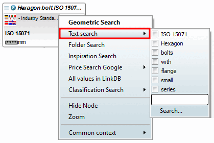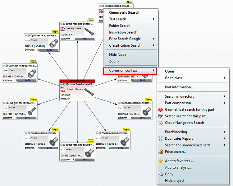 The selected part is the reference part for the search. Click on the Geosearch [GeoSearch] menu item to start the search immediately.