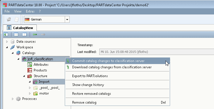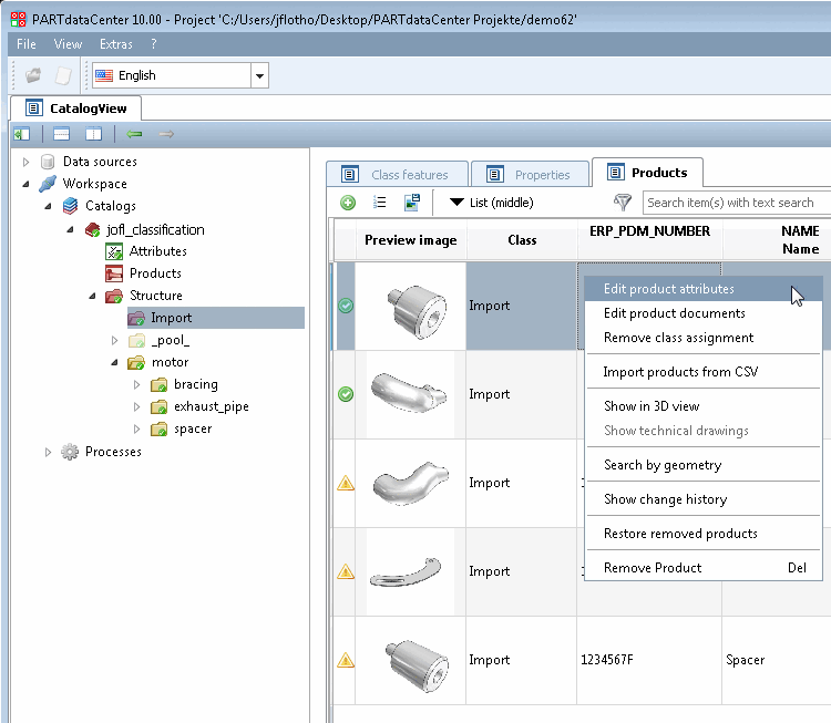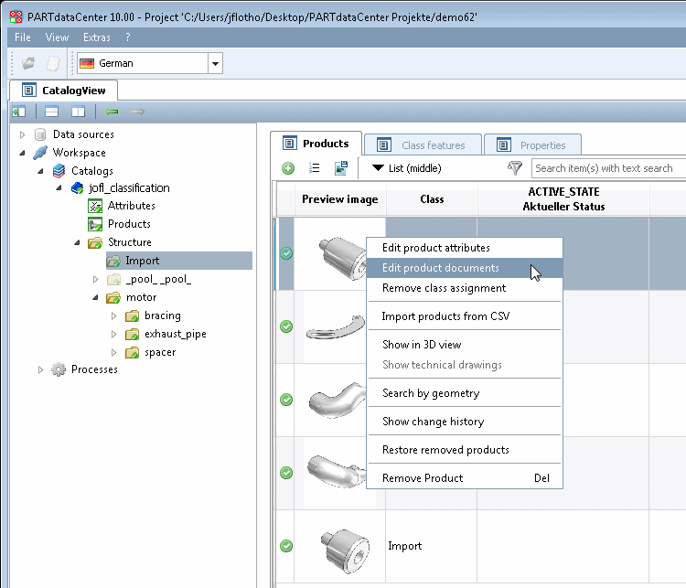 Select the import directory in the structure view [Structure] and click on the Import products from CAD command in the context menu.