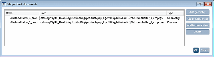 The imported product has a geometry in zjv format and a preview image in png format, which were automatically generated from the native CAD file during the import process.