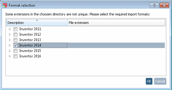 Activate the checkbox for the appropriate CAD system version and confirm with .