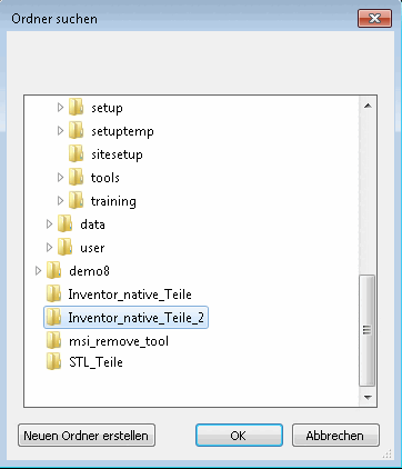 -> Directory selection [Select directory]: The path to the desired import directory is now entered.