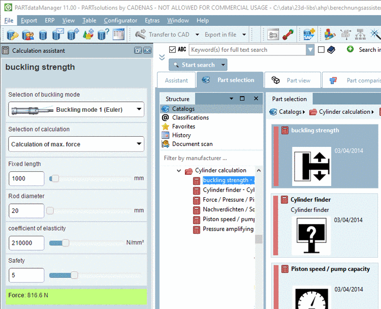 • Calculation assistants display calculation results on the fly when entering parameters and this way support part selection.