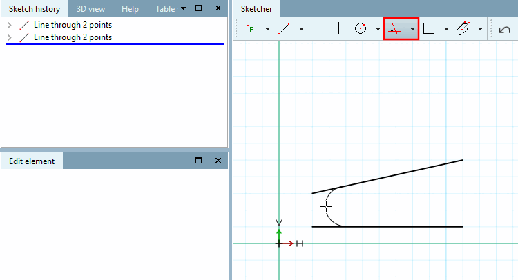 -> The radius is displayed in the Edit element docking window. If necessary, changes to the lines must be made directly in the sketch history [Sketch history].