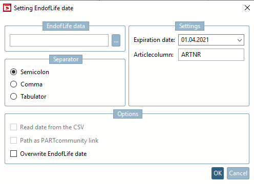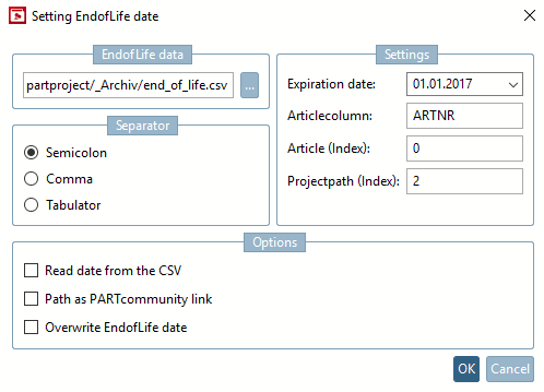 Setting options in $CADENAS/libs/all/plugins/EndOfLife.cfg: