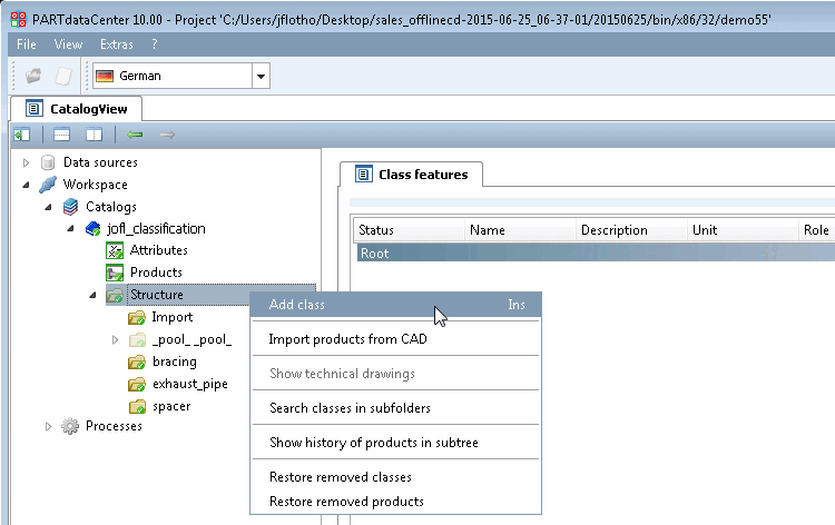 Classes that are no longer required or classes created by mistake can be removed using the context menu command Remove class on the respective class.