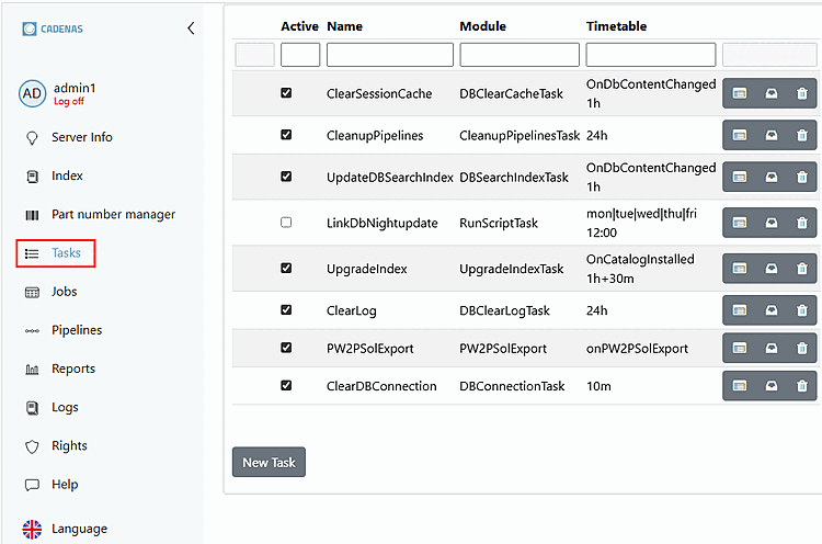 The description of "Tasks" can be found under Section 1.4.3, “ PARTapplicationServer Dashboard - Tasks ” in PARTwarehouse.