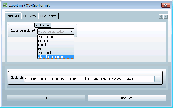 You determine the export accuracy [Export accuracy] on the Attributes tab page.