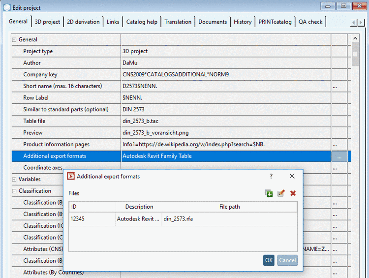 This new feature enables additional files (export formats) to be made available for the export. (E.g. Revit [RFA = Revit Family Tables]).