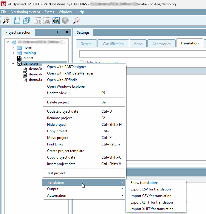 *.def: Translation file, PARTproject opens the Translation tab page.