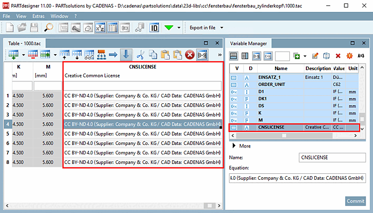 In this way the license is present in all formats, which transfer parameters and thus is transferred to target systems like CAD, for example.