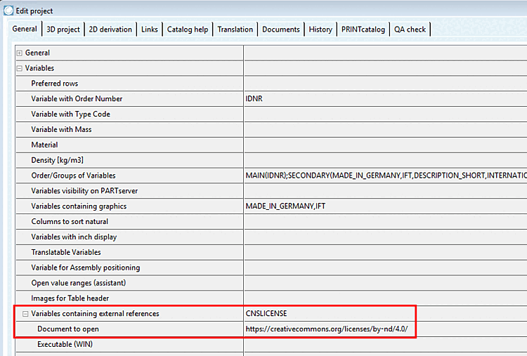 If a Catalog is licensed under a Creative Commons license and is the catalog also available online (3Dfindit, PARTcommunity portal, etc.) so in addition to the variable CNSLICENSE , a