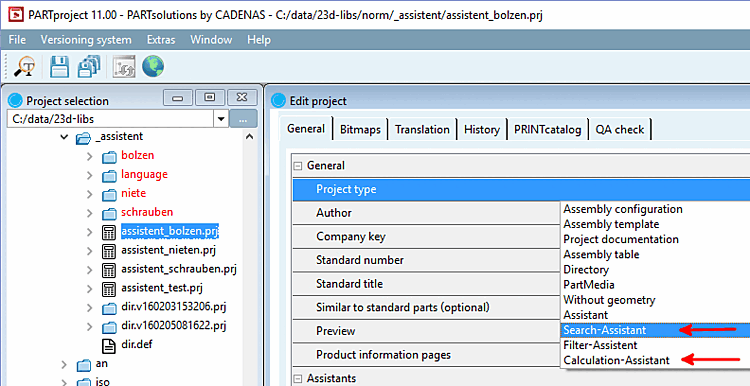 1. In PARTproject under Edit project, select the General tab page and then under Project type, select Search wizard [Search Assistant].