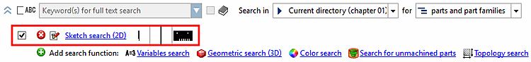 Click on the Sketch search (2D) link to open the dialog box for editing the sketches. You can now use the sketches in their current state or, if necessary, edit them further and only then use them for a sketch search.