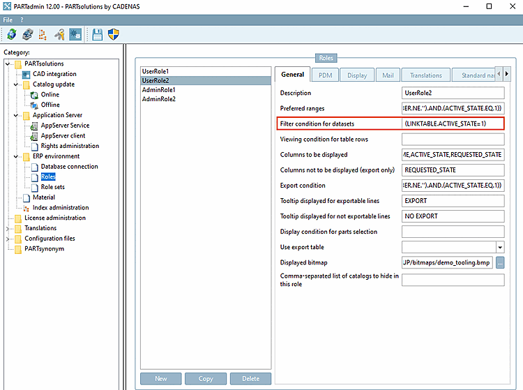Setting in the user interface under PARTadmin -> Category Roles -> General tab -> Filter condition for data records [Filter condition for datasets]