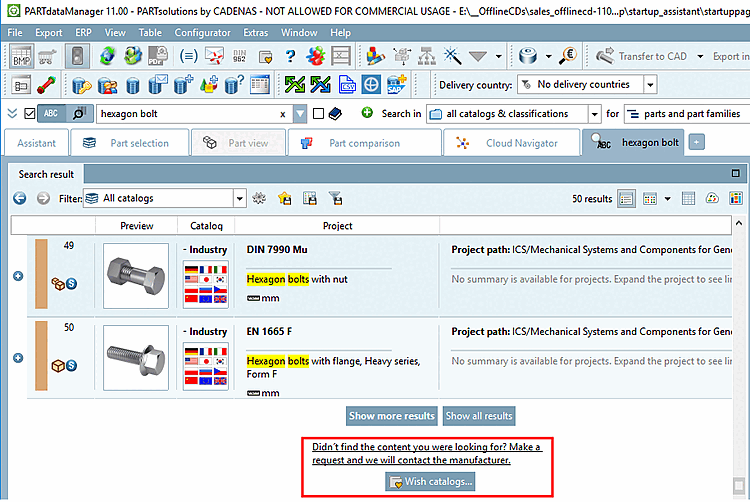 The feature can be activated (YES [Default]) and deactivated (NO) in the configuration file psolopt.cfg in the block [SettingsSearch], key ShowWishCatalogs.