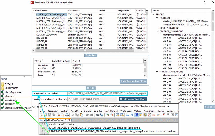 statistics.xlsx. After clicking on , this is already selected.You can open the current report directory directly from the Extended ECLASS validation report dialog.