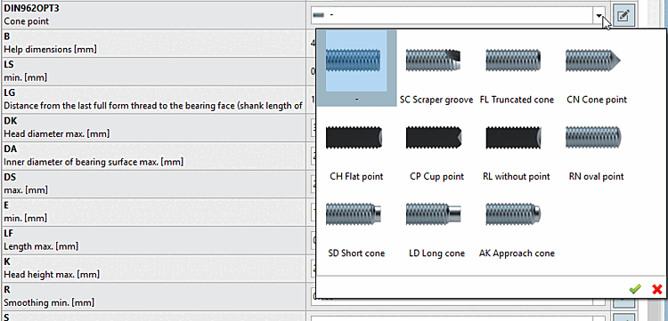 3. In the last step, you determine the value range variable DIN962OPT. There are different types of value range variables. See Section 1.4.2.1, “Value ranges ” for more information.