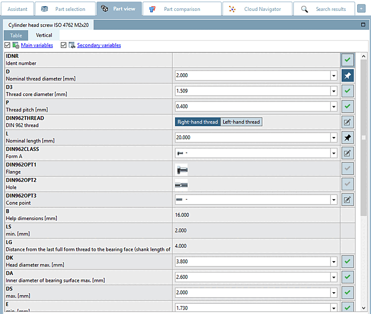 -> All other values that depend on this value show the tick symbol (tooltip: selection completed, there is only one possible value left [Selection done. There is only one value left to choose.] ).