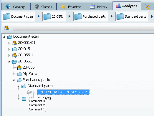 This makes sense, as different purchasing analyses are applied to the various groups following the document scan [Document scan]. For example,"make or buy " for in-house parts, and supplier search [Supplier search] for standard and purchased parts, e.g.
