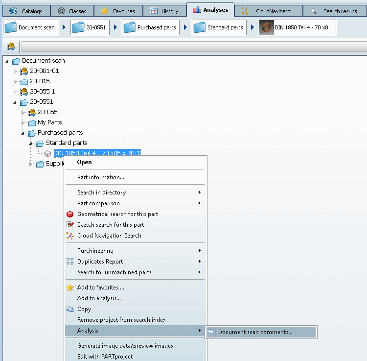 In the PARTdataManager under Part selection -> Structure, select the Document scan tab page.