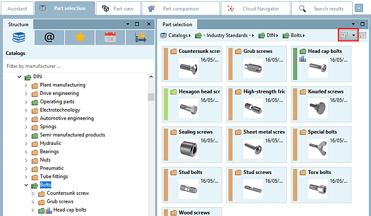 The elements of the next level down are now displayed on the right in the part selection [Part selection].
