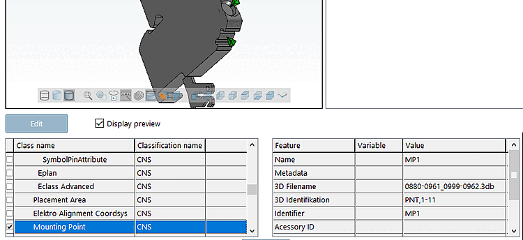 Select the desired connection point and classify it as a mounting point. (To select points and call the command, see Mounting Description)