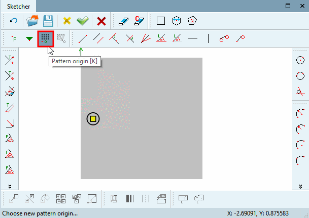 Open the sketch with the original hole and set the pattern origin to the hole using the Pattern origin button.
