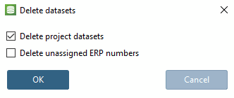 If only Delete project data records [Delete project datasets] is clicked and a fully completed data record is selected, the ERP number is retained and the other information is deleted. Data records that only contain the ERP number cannot be deleted with this option.