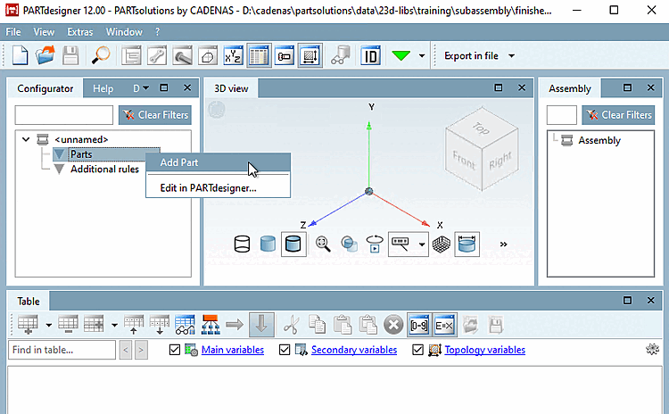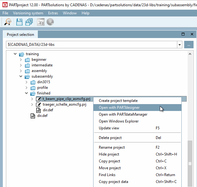 training/subassembly/finishednext to the original configurationtraeger_schelle_asmcfg.prj.To do this, click on the New project context menu command at