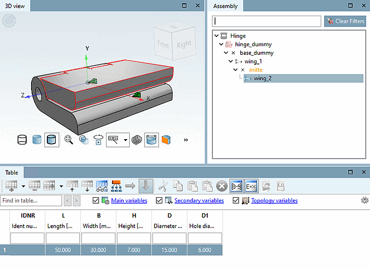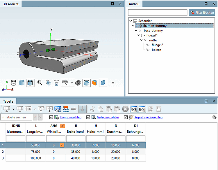 Click on the assembly designation in the docking window Structure [Assembly] (here in the example "Hinge").
