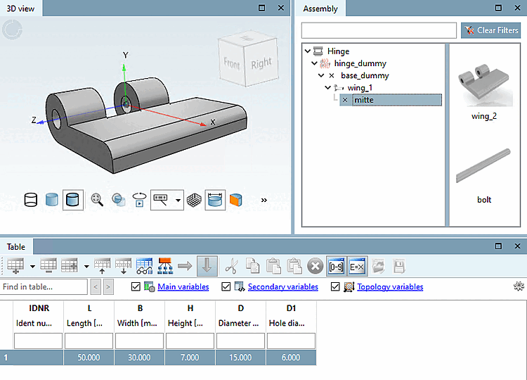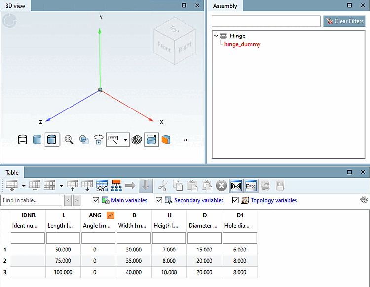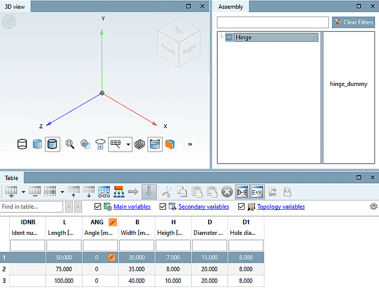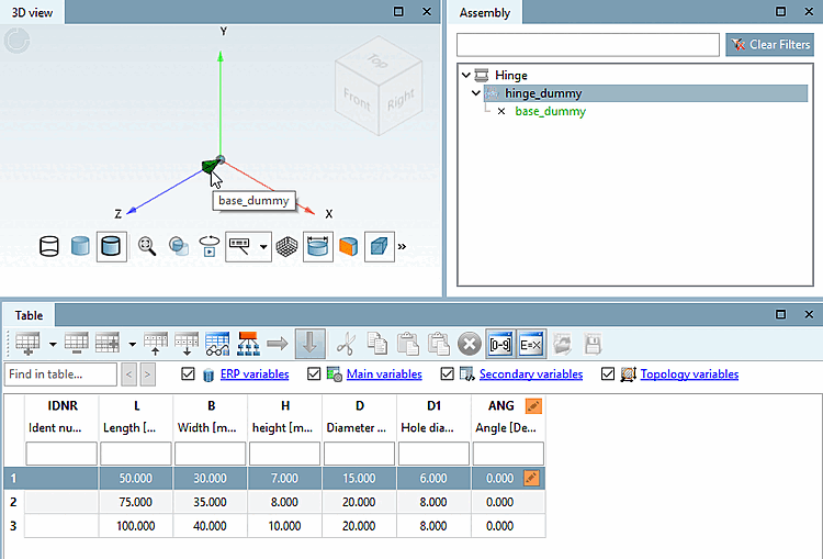 -> The configuration is displayed with table. (Dummy table will be used as assembly table later.)