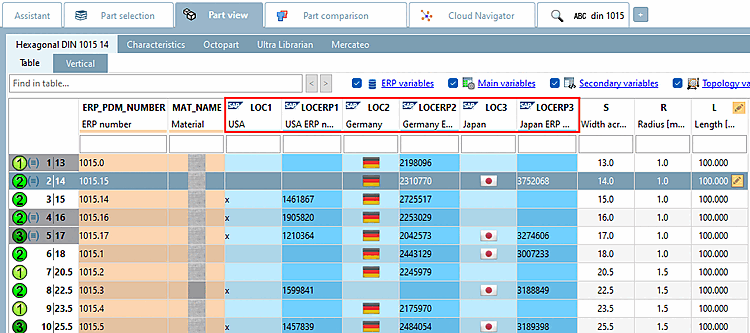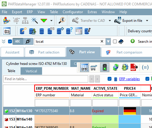 Prerequisite: If TRANSLATIONTABLE is filled with values for certain ERP numbers, variables and languages and exactly these variables have been set to "Yes" in this option, they are displayed in 3Dfindit or PARTdataManager.