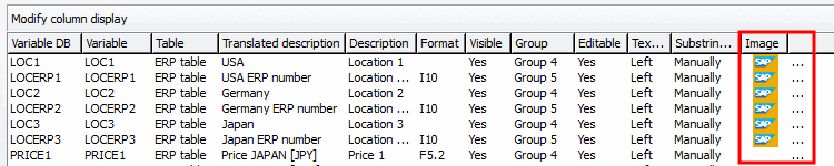 You can use icons in the column header of characteristic attribute tables in PARTdataManager. In this way you can mark columns with third party information (SAP for example).