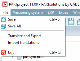 Export translations [Translate and Export] and import translations [Import translations] can be used to exchange language files between different PARTproject -Installations (workstations).