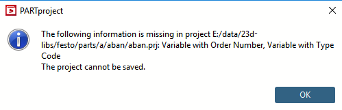 Note If a corresponding entry is missing under PARTproject → Settings → Tabbed page General → Variables → Variable with order number and/or Variable with type key, an error message appears.