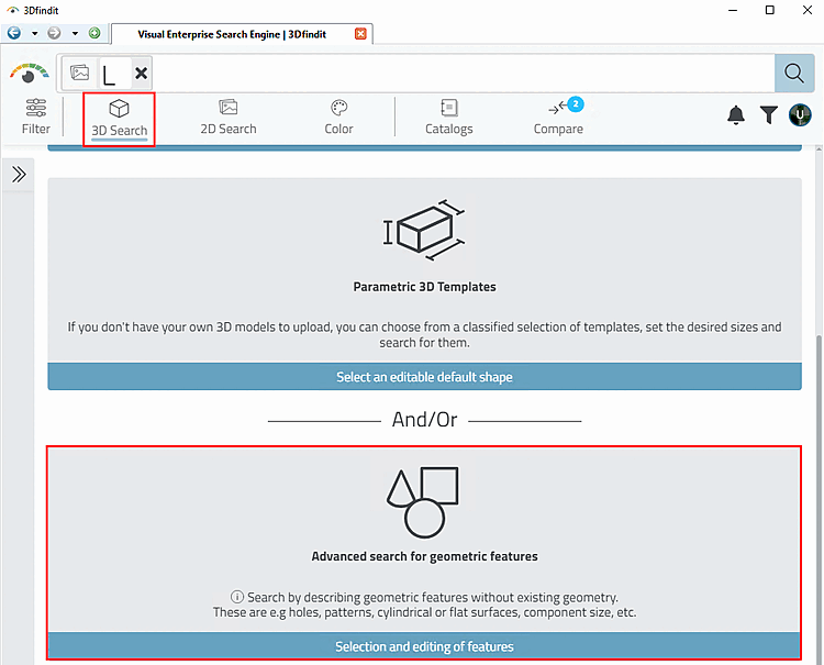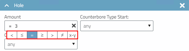 If there are a large number of hits, it may be useful to restrict further. You have the option of specifying a hole [Hole] or slotted hole [Slotted Hole] under Geometric features.