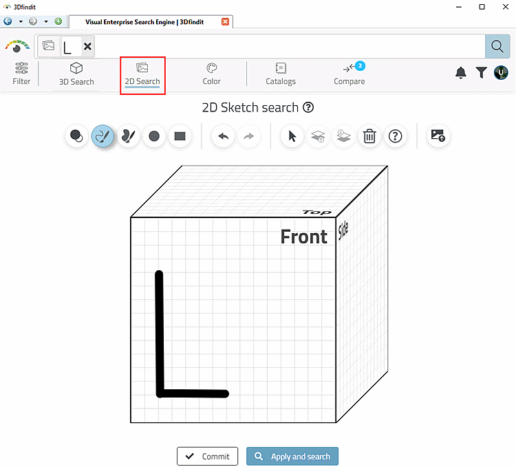 Use the 2D sketch search [2D Sketch search] to draw the side view of the desired angle.