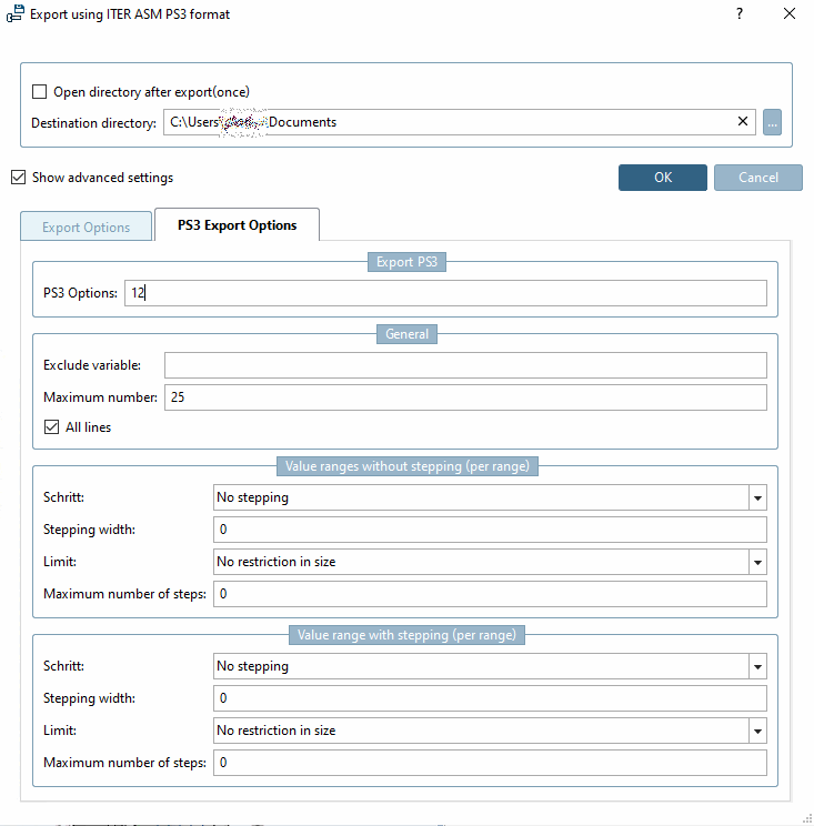 Tabbed page Export options [Export Options], Tabbed page PS3 export options (see figure above)