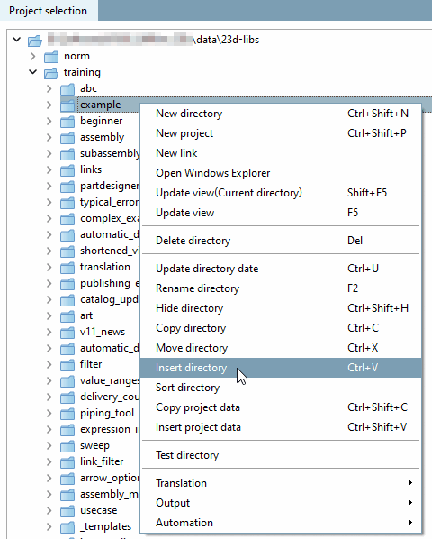 Copy directory creates a copy of the selected directory / folder. This copy can be integrated into the directory tree using the (temporary) Paste [Insert directory] directory command.