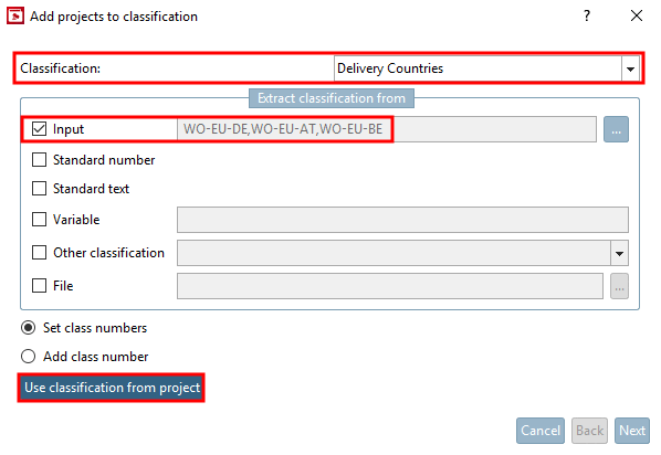 Select a directory to whose projects you want to transfer the classification and click on the context menu command Add projects to classification under Automation.
