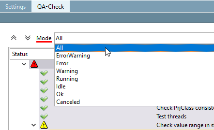 As soon as you click in the QA Check Settings dialog, the selected test criteria are applied and the test run is started.