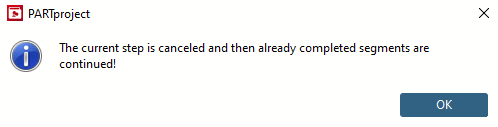 The current step is canceled and then already completed segments are continued!