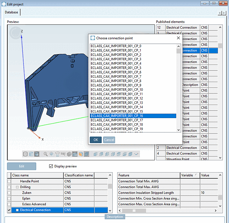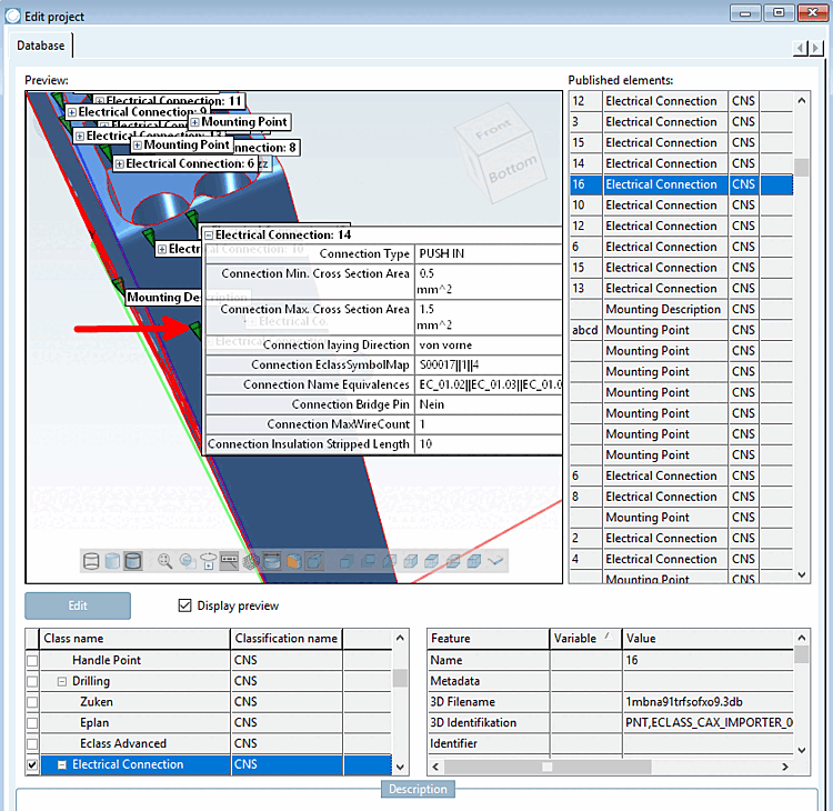 Select "Electrical Connection " under Class name. (The check mark at the beginning of the line must be set