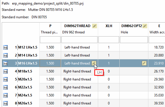 The old project din_80705.prj with the value range variable DIN962THREAD was split into 2 target projects din_80705_r.prj and din_80705_l.prj with a fixed variable