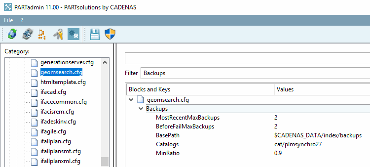 Settings are made in the configuration file geomsearch.cfg, in the block [Backups].