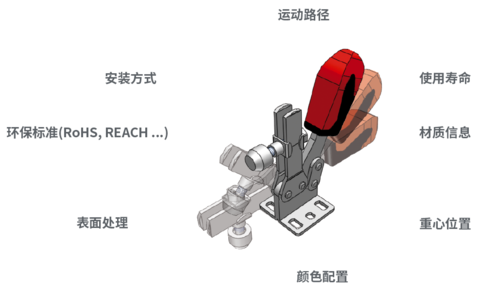 对于产品研发人员而言,仅仅提供零部件的几何模型是远远不够的。在产品设计过程中,起关键作用的还有零部件的其他属性信息,诸如在模拟与仿真过程中需要的重心位置、材质以及符合的环保标准等。